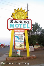 in Las Vegas, NM still shines off the roadside. Check out the image of the smiling face sun on the marquee.