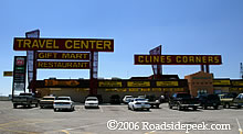 Head down the southern segment of Route 66 west of Santa Rosa, and you'll see the red and yellow signs of the Clines Corner Travel Center. 08-06