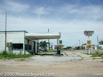Here's another of McLean's many old gas stations. Check out the tire on top of the sign. I wonder what the gas prices looked like here in McLean in 2000. 08-21