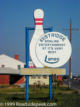 Here's the rather clean looking sign for the Eastridge Lanes located off Route 66 in Amarillo. Eastridge has a slogan "bowling entertainment at its very best".