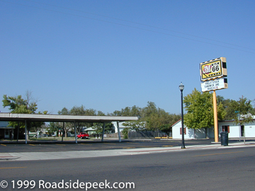 The Roadrunner Drive-in eatery features a sign that is very well known amongst Route 66 fans who are familiar with the Texas town of Vega. The Roadrunner appears to have been closed and n a suspended state for the past 20 years. 08-21