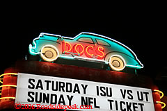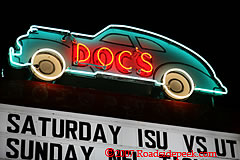 Here's a shot of the neon sign at Doc's Motorworks Bar and Grill. This Austin, TX location is usually open til' midnight and has quite a turnout. The sign was designed and built by Todd Sander's from Roadside Relics. 01-07