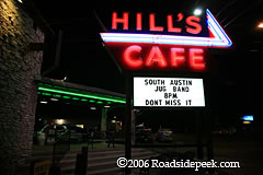 UPDATE 11/20 : The Hills Cafe closed down in September 2018 as this area of South Congress continues to evolve into mixed-use development. The area's rapid growth and high property taxes is making it almost unaffordable for the venerable Austin businesses to stay alive in Austin, especially in this area.