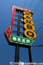 This colorful marquee points the way in to Sammie's Bar-B-Q in Fort Worth, TX. Sammie's is family owned serving hickory smoked barbecue since 1946 in Fort Worth. 06-04