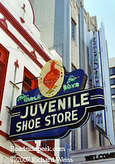 Fort Worth, Texas is home to this Juvenile Shoe Store sign which Solomon's Juvenile Shoe Store used to occupy. The building this sign is on was built in 1903 and currently is occupied by th Red Goose Saloon. 02-07