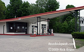 With its swooping A-framed canopy, this former Phillips 66 Gas Station in Burlington, VT is a good reminder to the days when many of the old petrol stations had this mid-century look. 04-09