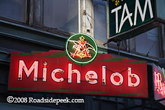 The Michelob sign is a prominent neon display at night at the Tam in Boston, MA. 02-08