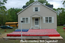 These milk bottles are decorated in the shape of the American Flag. I wonder how many milk bottles it took to create this piece. The sun here says Jug City, USA.