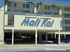 Check out the Mali Kai Motel in North Wildwood. This motel features the name of the motel above the carport area. The Mali Kai is a good example of the Polynesian themed motels that are, or at least, were quite popular in the Wildwood resort. 03-08