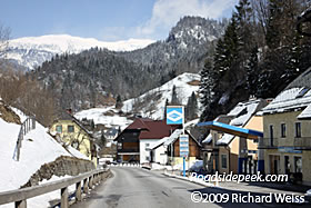 (Near left) The Gotz Gas Station tucked within the spectacular Austrian scenery.
