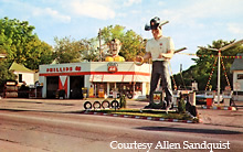 The gas station pictured was Vaughn's Service Station located on Highway 20 in Fort Dodge, Iowa. Check out the goofy figure