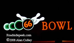Here's the 66 Bowl in Oklahoma City, OK. Check out the way the bowling balls show motion as they knock the pins over on this ten pin delight of a sign. 01-08