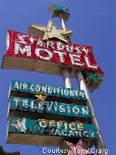 This old roadside sign for the Stardust Motel is located