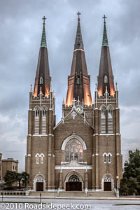 The Trinity Episcopal Church in Tulsa, OK features a style that appears to be Gothic. 08-17