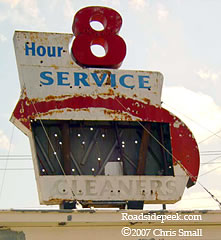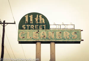 Here's the sign for the 11th Street Cleaners on Route 66 in Tulsa, OK. The business was torn down a few years ago. Word was that the sign was to be donated to a museum. No confirmation on that though. 08-17