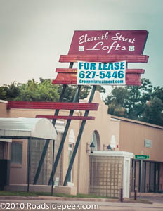 This sign located along Route 66 in Tulsa is home to the Eleventh Street Lofts. This was the location of the American Cleaners during the trip back in the mid 1990's. 08-17