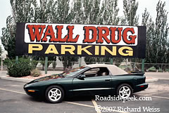 When you talk about roadside landmarks, many come to mind. One of the most famous is Ted Hustead's Wall Drug Store in Wall, SD. Known for providing free ice water to thirsty travelers, Wall Drug has been the roadside stop of choice of many a travelers since Wall Drug opened in 1931. More info can be found at the Wall Drug site. 03-07