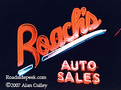 Check out the neon on the marquee at Roach's Auto Sales in Fort Wayne. If the neon doesn't get you, the name will. 07-07