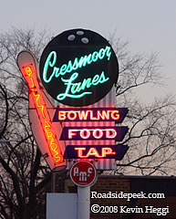Cressmoor Lanes in Hobart, IN features a gem of a marquee as it invites those looking to bowl a game or two. Check out this sign as it lights up the sky at dusk. 10-08
