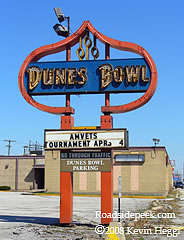 The Dunes Bowl in Gary, IN shows off its theme based marquee. This Dunes sign looks as if it was a sister to one of the old classic ones from Vegas. 10-08