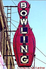 In Chicago, IL is a huge pin marquee beckoning would be bowlers from miles around. Yes, it's the Fireside Bowl in all it's bowling pin splendor!