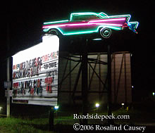 This is the Georgetown Drive-in Theatre located in Georgetown, Indiana. It opened in 1951 and has two screens. It has a great neon marquee. Many thanks to Rosalind Causey for info and photos below. 08-06