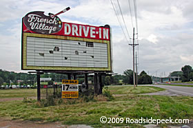 This old faded drive-in marquee sits aside the French Village Drive-in Theater in East St Louis, MO. Happening to come across it by chance in 2000, the drive-in exuded the sense of nostalgia to days gone by when crowds of visitors used to get in line to enter the lot.