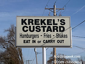 Springfield, IL is home to many roadside eateries, one of which is Krekel's Burgers and Custard. Krekel's features grilled burgers and milkshakes and has been a Springfield institution since opening its first stand in Decatur, IL in the 1950's. See this website for more information about Krekel's as well as many other local favorites. 05-09 |