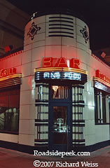 The Elwood was built in 1936 by Detroit architect Charles Noble and is designed in Art Deco. More info can be found at the Elwood Bar and Grill site. 03-07