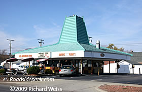 Here's an old A&W Root Beer drive-in stand with its familiar hat look. This drive-in is located in Southgate, MI. 11-09