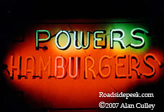 Here's the neon sign at the Powers Hamburgers, located in Fort Wayne, IN. 07-07