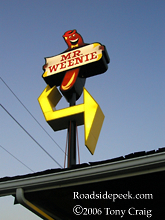 Check out this night shot of the Mr. Weenie marquee in Peru, IN. Mr . Weenie is one of the remaining places that still features car hop service. This Peru, IN landmark opened back in the 1960's. 03-06