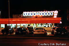 Here's a familiar site for those in the Midwest. The Steak n Shake with its familiar neon glows as business