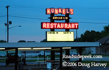 Here's a neon shot of Kunkel's Drive-in Restaurant in Connersville Indiana, which has been serving up "Kunkel Burgers" since 1954. 09-06