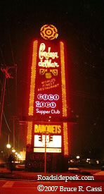 At one time the Condesa Del Mar had 2 restaurants and a supper club. Top name entertainers played here early on in their careers. Today, only the Onion Field restaurant survives. A newer & much smaller neon sign was purchased back in 2003. 06-07