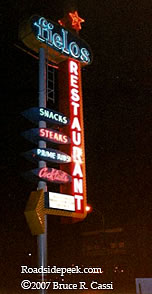 In December of 1990, the Fielos Restaurant sign really lit up Western Avenue. Even the starburst at the top still blinked. Unfortunately, the bulbs in the arrow and the oval surrounding the word Fielos didn't light up anymore. In 2005 the sign was taken down. 06-07