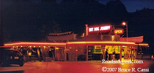 Hot Dog Johnny celebrated its 50th anniversary in 2006. This road side drive-in is on a blind curve and at night use caution if approaching from the south. 06-07