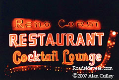 UPDATE 07/07 : The Reno Corsi Restaurant & Cocktail Lounge stood abandoned for many years. In 2005, the neon sign was removed. A Sports Bar is the building's latest tenant. Many thanks to Bruce R. Cassi for update. 07-07