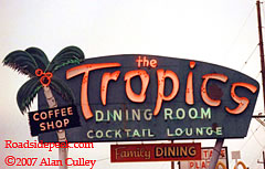 The Tropics Restaurant was built in 1950. It is located off the Mother Road in Lincoln, IL. The marquee is still of the neon variety. 07-07