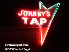 Munster, IN is home to this eye-catching marquee. The neon still glows from the lettering and arrow at Johnny's Tap. 10-08