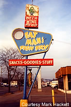 Here's one of the vintage Arby's "hat" signs with neon still working. This old sign is found off the roadside in Indianapolis, IN.