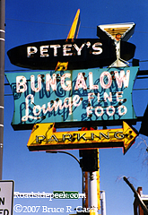 Petey's Bungalow Lounge opened around 1960 and serves up some pretty big steaks. The drinks are known to be strong too. 04-07