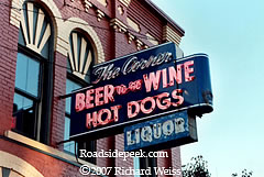 UPDATE 02/08 : The Corner Bar is "world famous" as being home of the Hotdog Hall of Fame.  Eat 10 hotdogs and you can get your name on the wall. Needless to say, they sell a lot of  hot dogs and the walls are pretty full.  I am proud to say my name is on the wall but back in 1972 you only had to eat 8 to get on the wall. Many thanks to Bruce McLean for update. 02-08