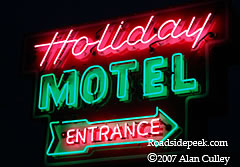 The neon still glows at the Holiday Motel in Sturgeon Bay, WI. The marquee is well lit up at night. 07-07