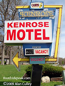 Check out this old sign at the Kenrose Motel. The Kenrose is located a couple of miles west of South Bend and looks to still be in business.