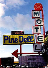 The Pine Dell Motel marquee is more subdued, but contains a paper