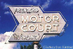 Another Wisconsin treasure is the Friendship Motor Court. Instead of using an arrow, the shape of the marquee itself points toward the lodging area