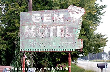 its services with its rooftop sign. This motel is called the Shelton Inn.