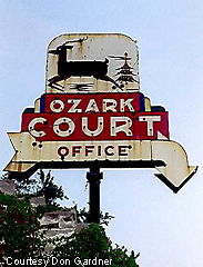 Another of the Route 66 treasures, the Ozark Court sign stands