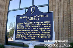 The old Auburn Automobile Company art deco building was built between 1929 and 1930 in Auburn, IN. The building once housed the Auburn Automobile Company which was once a builder of luxury cars, at least until 1938 when the Great Depression forced the company to file bankruptcy. Since 1974, the building has been home to the Auburn Cord Duesenberg Museum showcasing old classics. 10-08